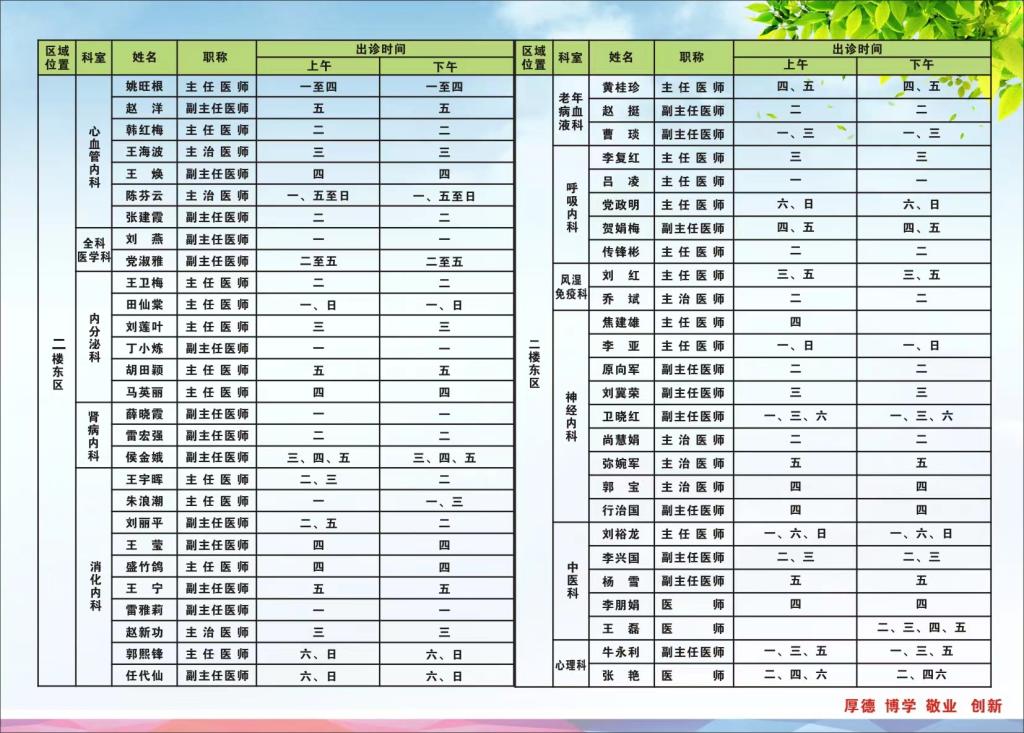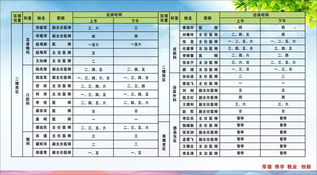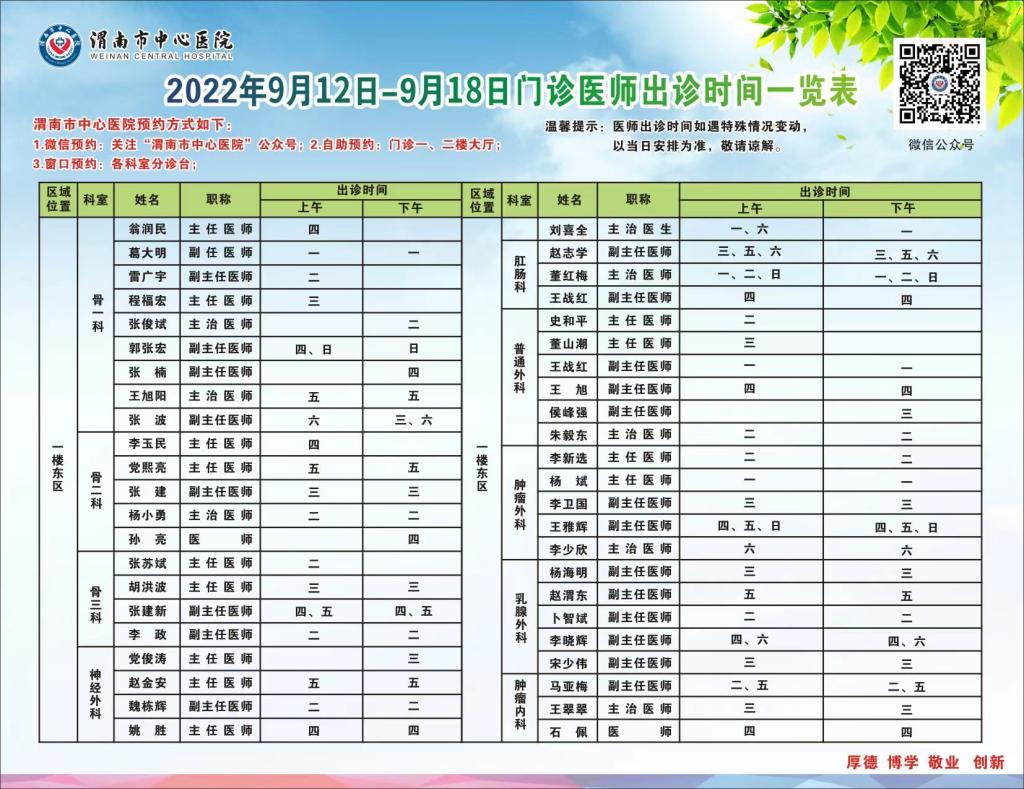 2022年9月12日---9月18日门诊医师出诊表