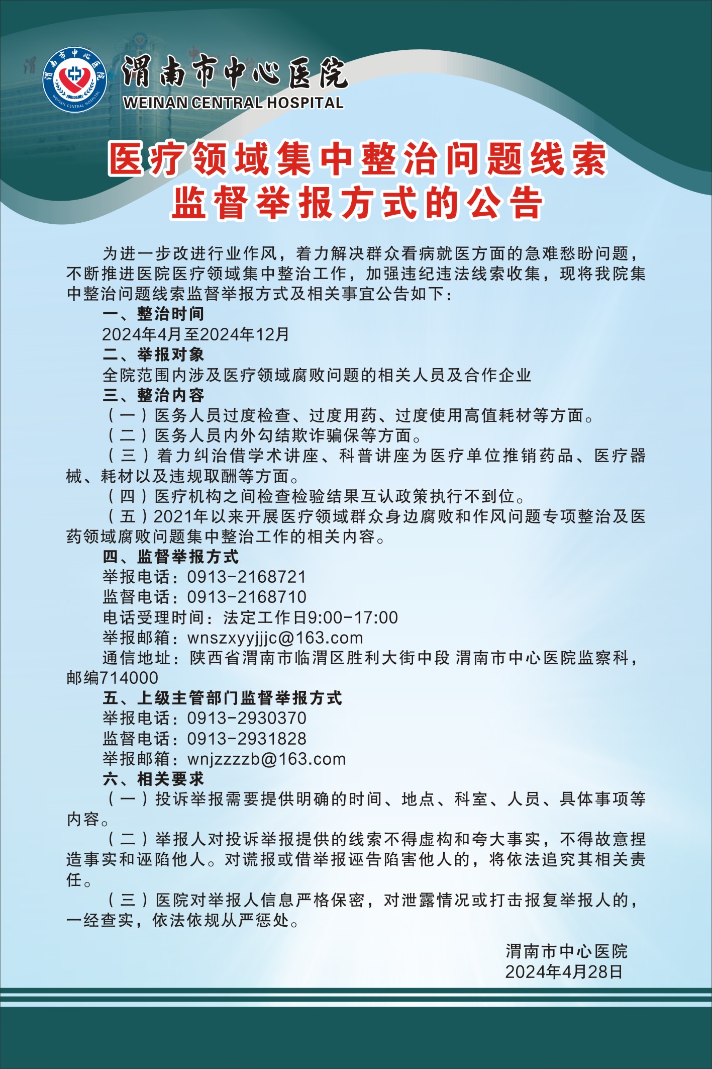 市中心医院医疗领域集中整治问题线索监督举报方式的公告