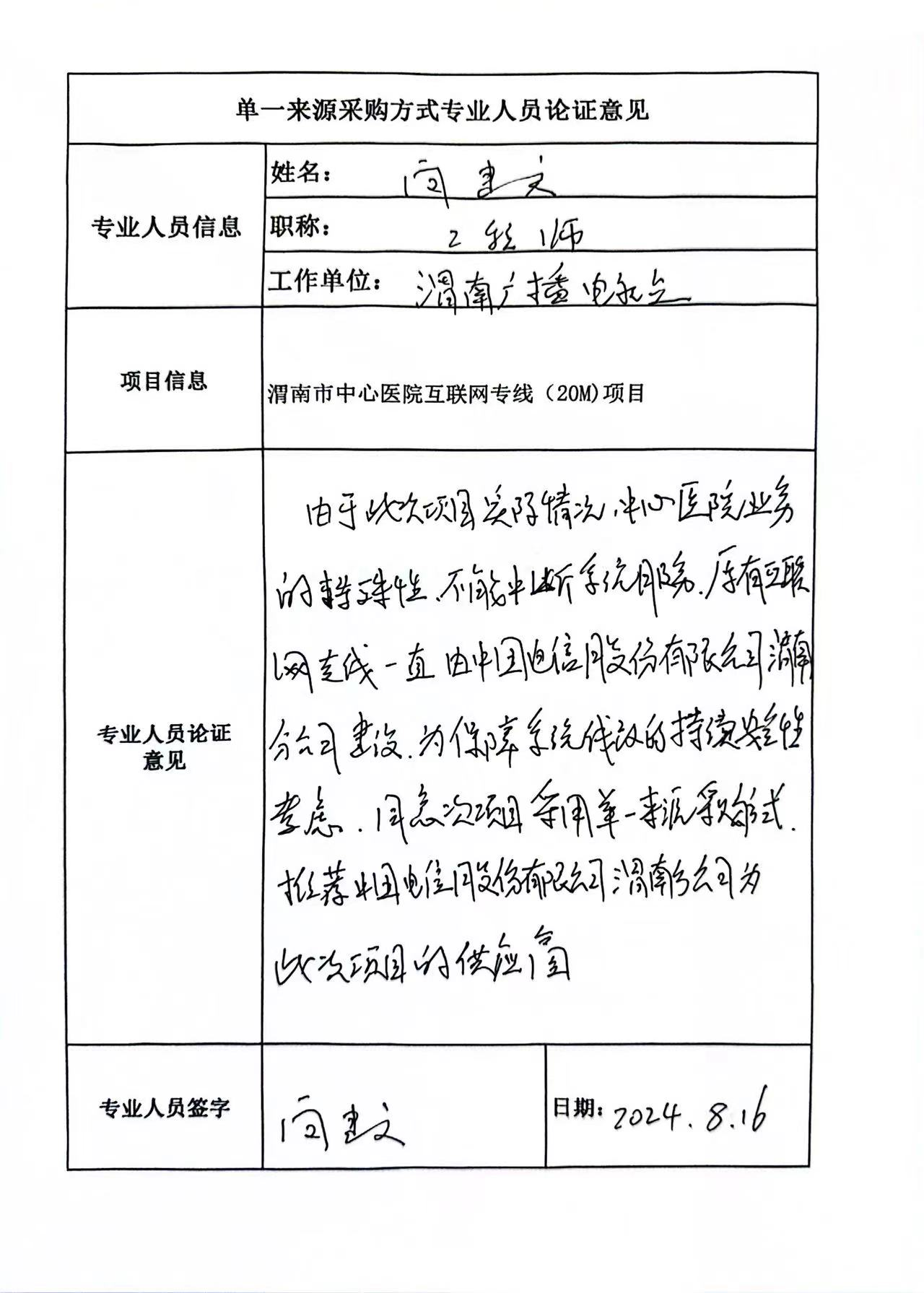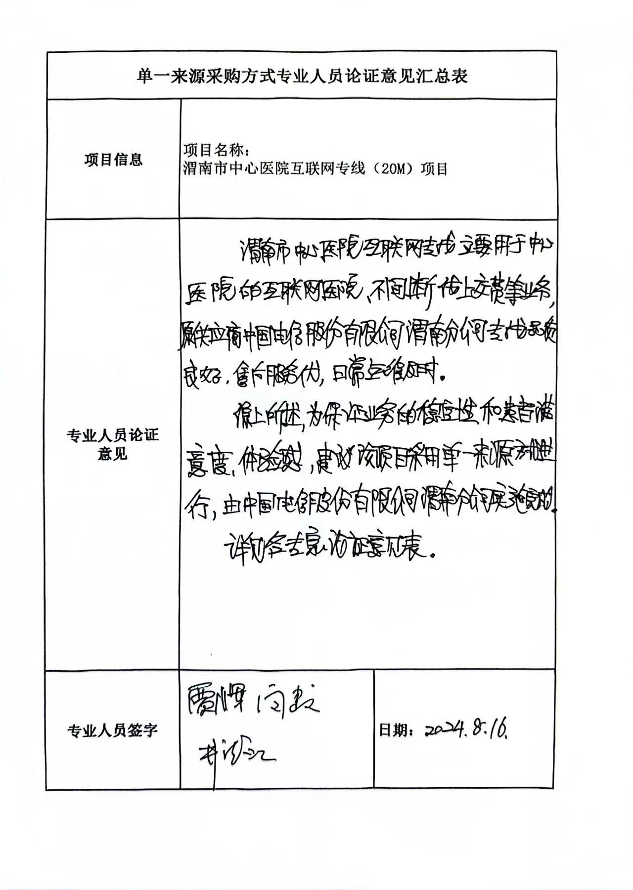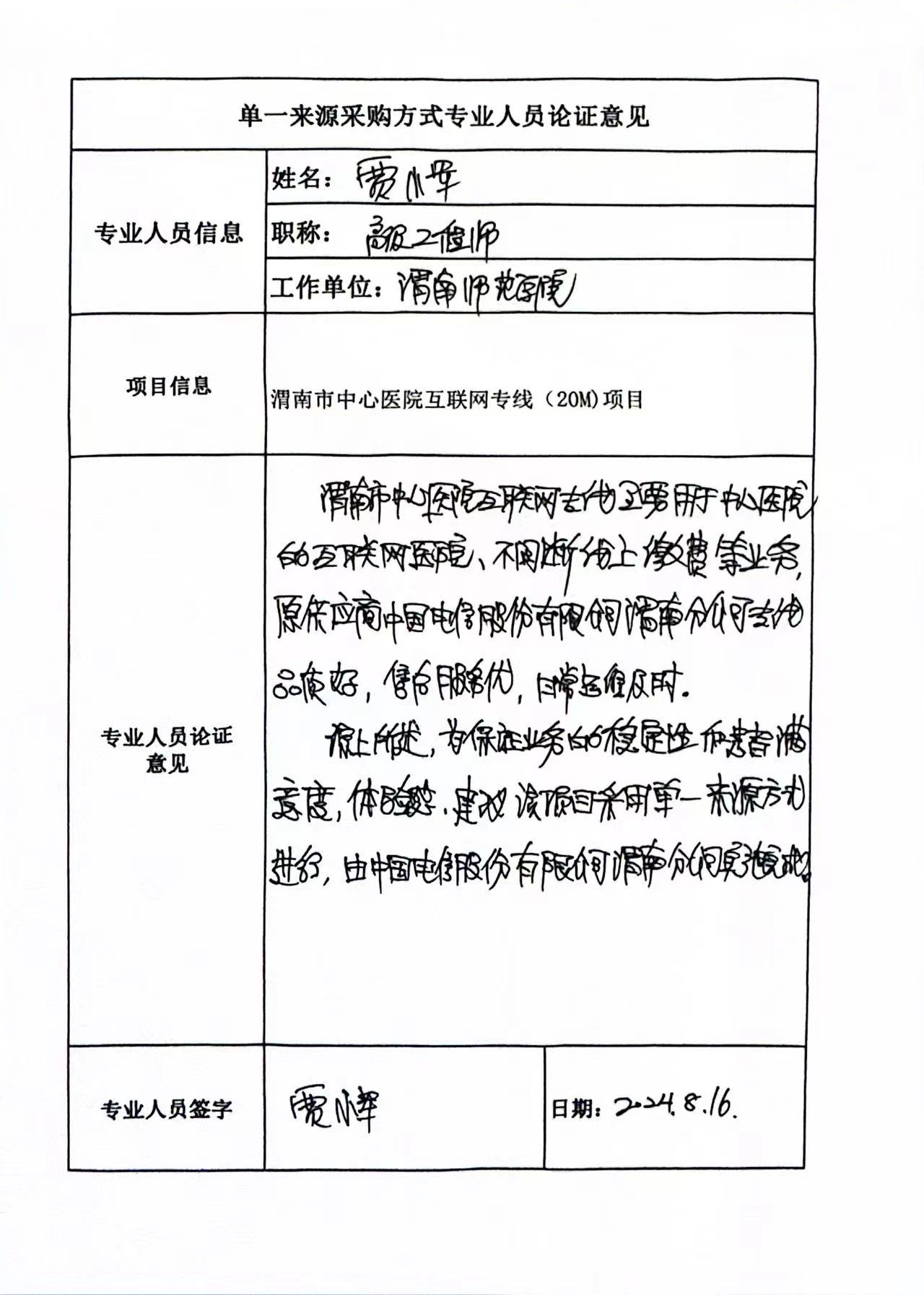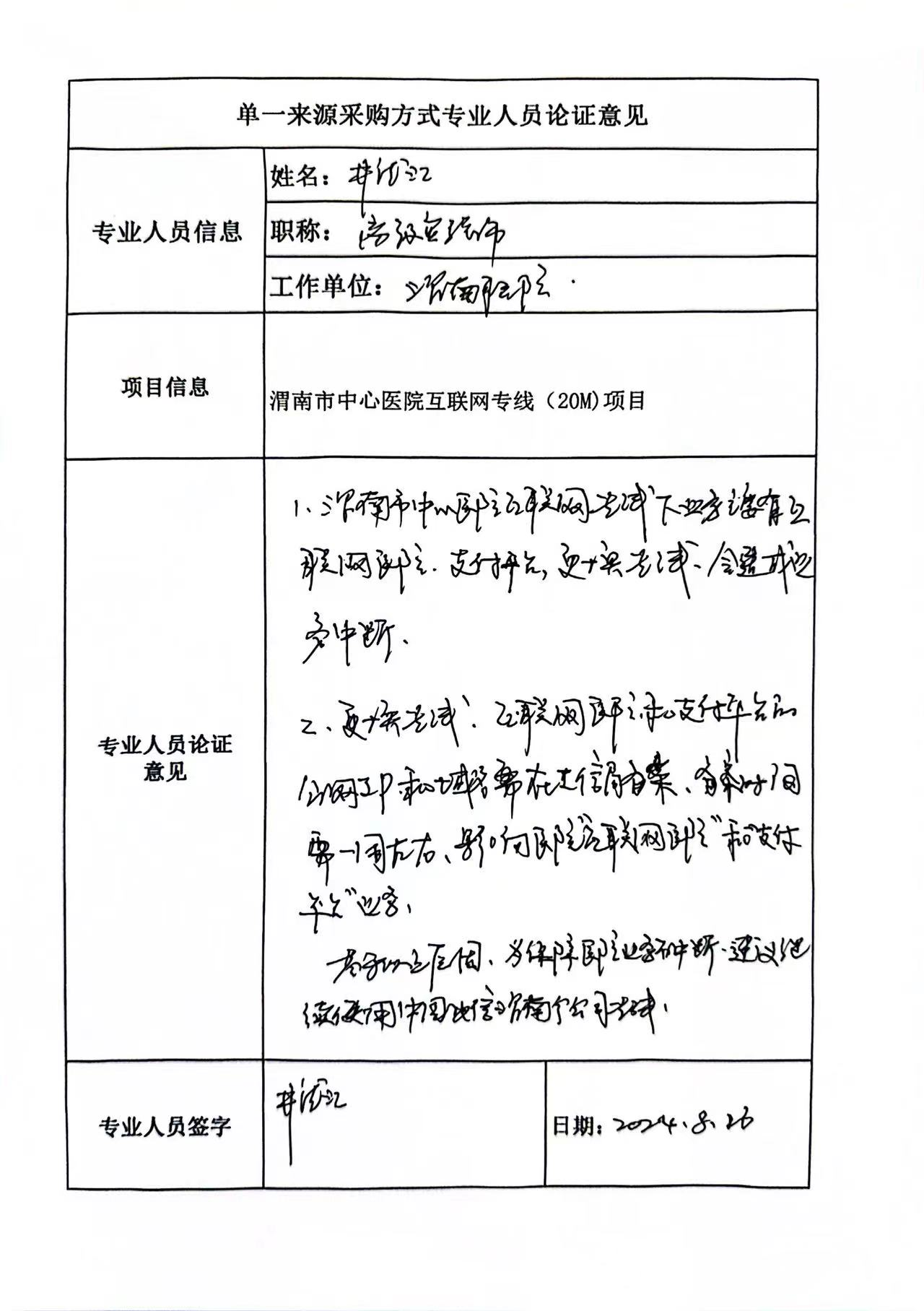 本院互联网专线项目提供商为中国电信股份有限公司渭南分公司,目前专线用于医院对外互联网业务,有固定的IP地址,已绑定医院相关业务,综合考虑不宜频繁更换线路。