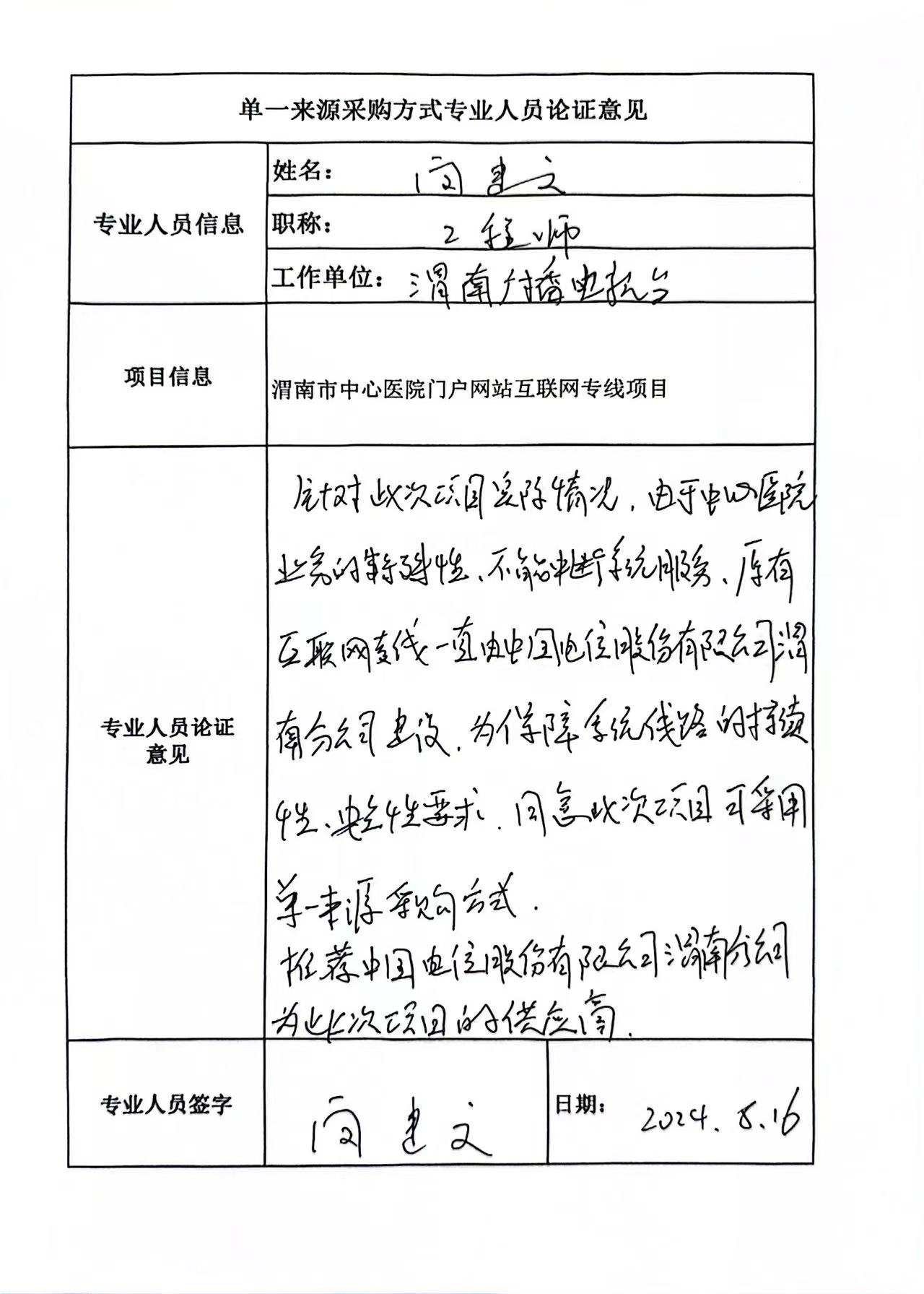 六、拟定供应商:中国电信股份有限公司渭南分公
