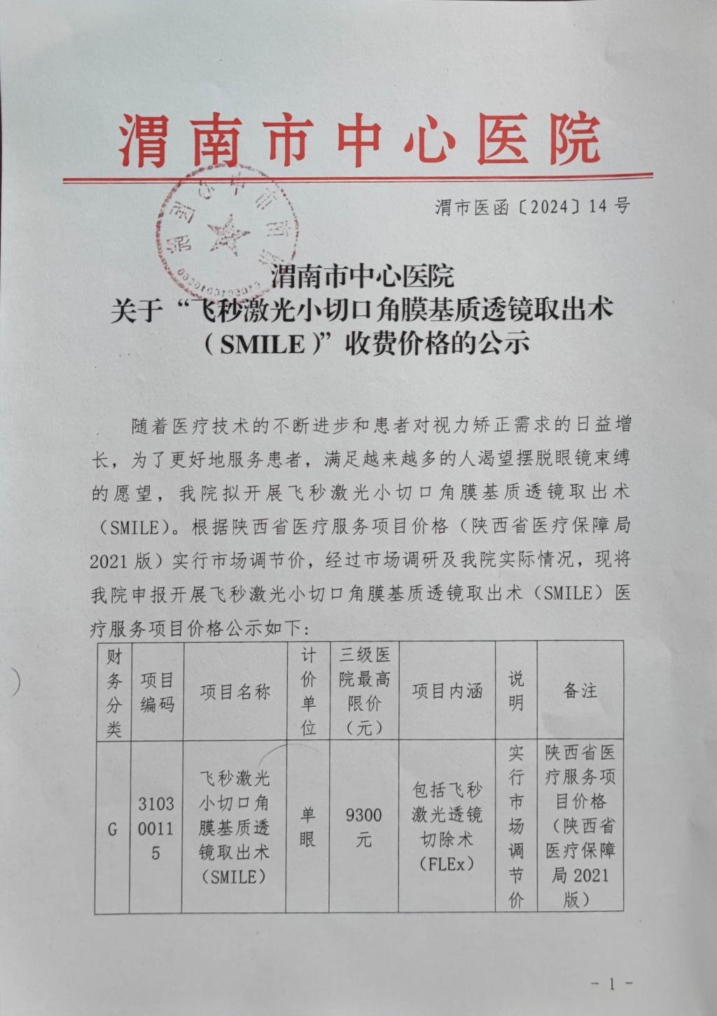 乐鱼手机站入口关于“飞秒激光小切口角膜基质透镜取出术(SMILE)”收费价格的公示