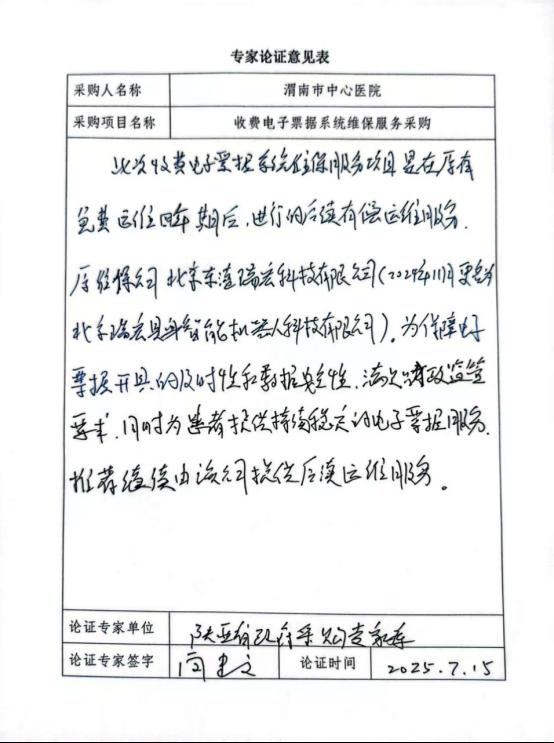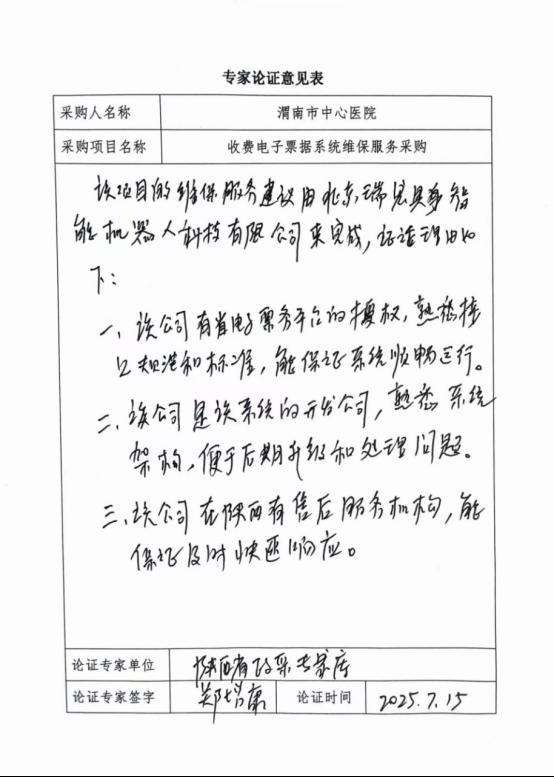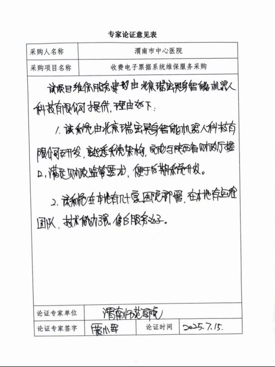 五、申请理由:北京东港瑞宏科技有限公司是医院收费电子票据系统的开发与实施公司,熟悉系统架构,同时该公司有省电子票务平台的授权,熟悉接口规范和标准,为保证电子票据的及时性和数据安全性,建议由北京瑞宏具身智能机器人科技有限公司(原北京东港瑞宏科技有限公司,2024年11月更名)继续做好后期维保服务工作。