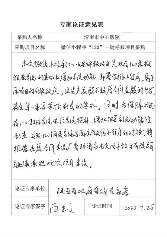 五、申请理由:目前医院使用的急救“120”调度平台厂家为珠海市安克电子技术有限公司,为满足听障人士的呼救需求,医院需要在急救“120”调度平台开通文字类一件呼救功能,建议本项目由珠海市安克电子技术有限公司直接实施。
