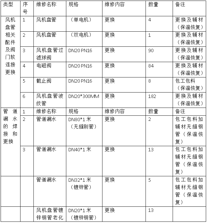 一、项目名称:风机盘管及前端阀门维修更换项目