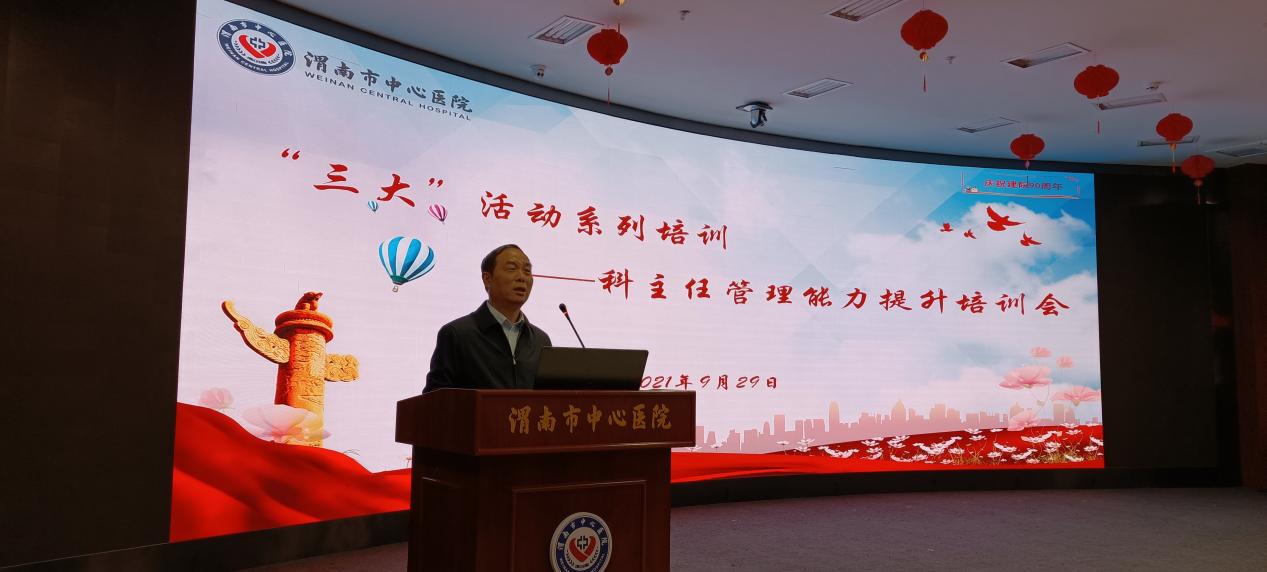 今年是“十四五”规划开局之年,医院建院90周年。为进一步加强医疗质量与安全管理,近期医院开展“医疗安全大排查、医疗质量大提升、医疗服务大改善”活动,按照活动实施步骤,9月29日下午,医务科举办科主任管理能力提升培训会。院长张进社、临床医技科室及医疗管理部门科主任参加培训。会议由医务科副科长刘韬主持。