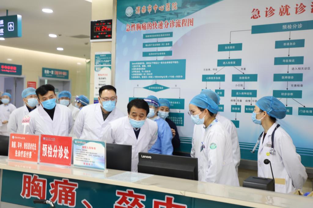 汇报结束后,专家组一行实地查看了急诊科抢救大厅、急诊监护室、急诊留观病房等地,通过查阅资料、实地查看走访、现场提问等方式对医院创伤中心建设的基础条件、人员配置、设备要求、培训、院前与院内急救体系建设等进行现场评估验收。
