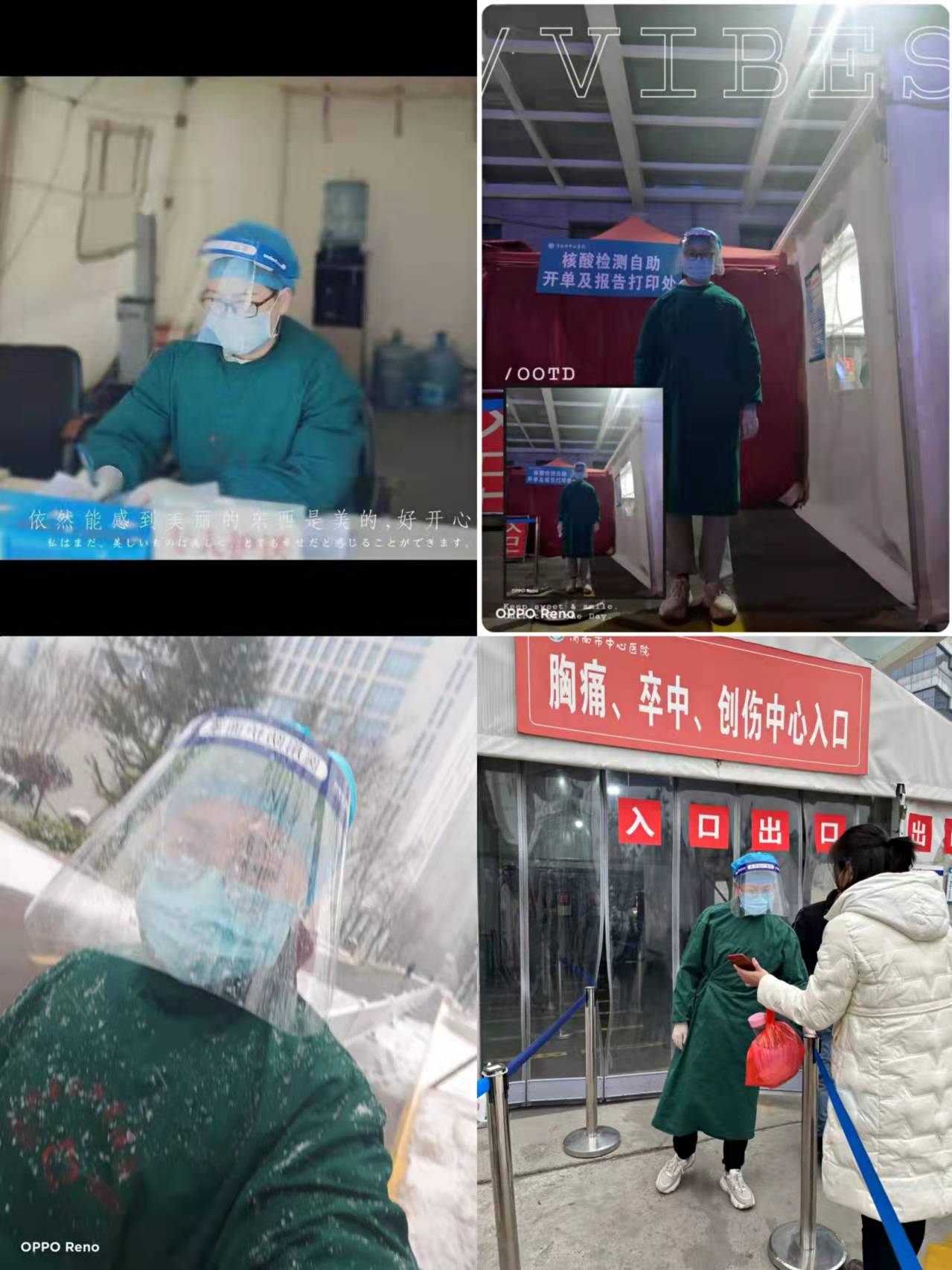 在急诊预检分诊口一年多的时间里,她作为一名普普通通的预检分诊护士,没有惊人的壮举,坚守就是她唯一的信念。她每天做得最多的事就是为就诊患者及家属测量体温、筛查发热病人。每天说得最多的话是:“您近期有没有发热、咳嗽?”预检分诊工作看似简单重复,一次次、一句句,每天要重复成百上千次。一天工作下来每个人口干舌燥、声音嘶哑。她深知分诊如前线,要守住阵地,就必须要做好病患与家属的筛查工作,这更是作为一名预检分诊护士的职责之所在。