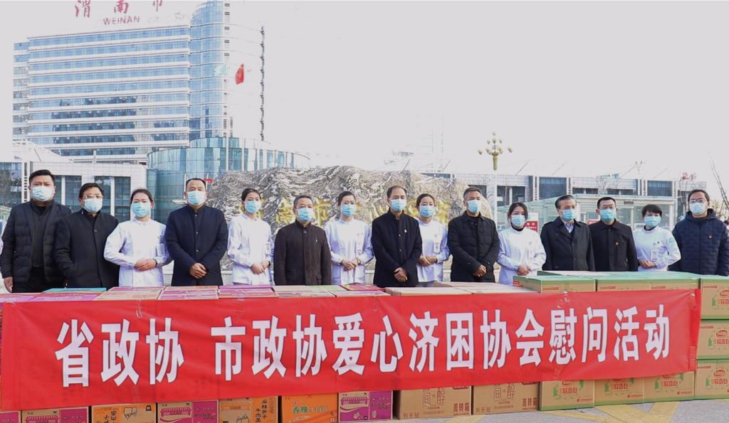 1月13日上午,渭南市政协主席陈俊哲、副主席张开、秘书长张旭斌一行赴乐鱼手机站入口,将二百余箱食品物资捐赠给防疫一线医务人员,为疫情防控贡献力量。党委书记张荣岗及院领导班子成员、部分医务人员参加捐赠仪式。