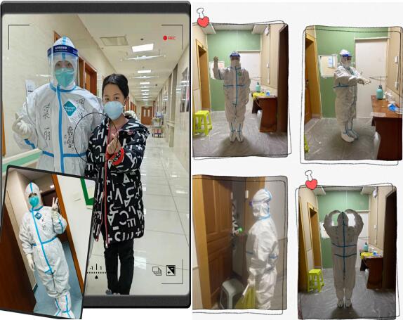 2022年1月1日至7日,医院先后抽调15名护士组成新冠救治护理应急队,以及6名医护人员组成的新冠救治医疗应急队,共赴长安,驰援一线。心血管内科护师袁丽和医师钟钟积极响应号召,各尽所能,被分别派往西安、临潼。她们接触的都是密切接触者、确诊患者,她们是真正奔跑在抗疫“火线”上的巾帼英雄。在隔离病房、隔离点坚守岗位,她们严格落实各项防控措施,认真执行每一项操作。新冠患者及密切接触者可能被病魔和心理压力双重折磨,她们耐心、及时给予患者心理疏导,缓解患者压力,传递爱与希望,用真情帮助每一位患者树立战胜病魔的信心。每位患者出院后、隔离期满健康返回的微笑是送给她们最珍贵的礼物。