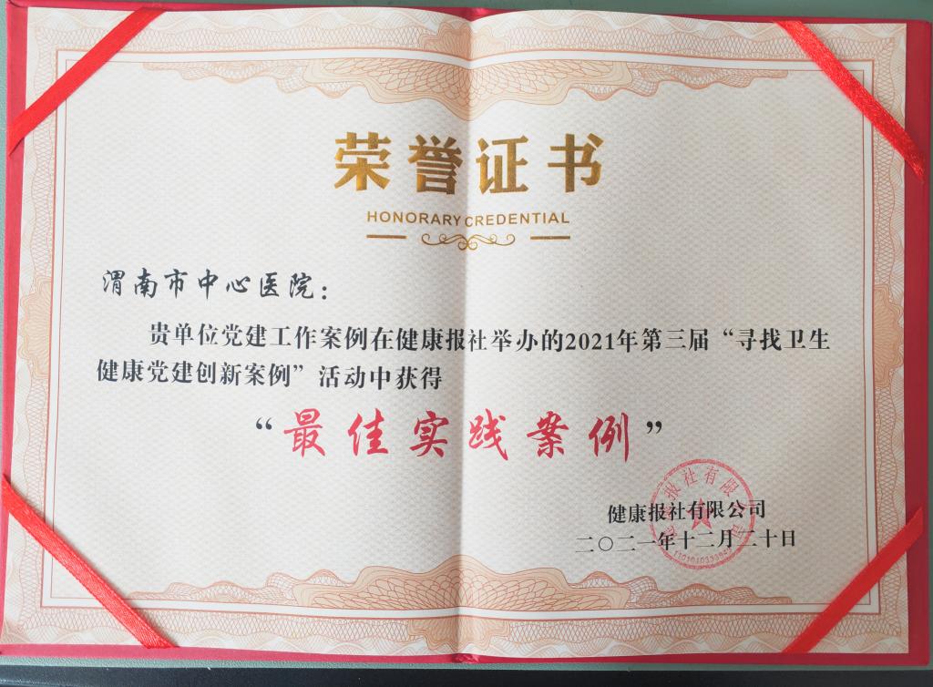 近日,由《健康报社》主办的全国第三届“寻找卫生健康行业党建创新案例”评选结果揭晓,渭南市中心医院在来自全国300余个医院的创新案例中脱颖而出,荣获“最佳实践案例”。