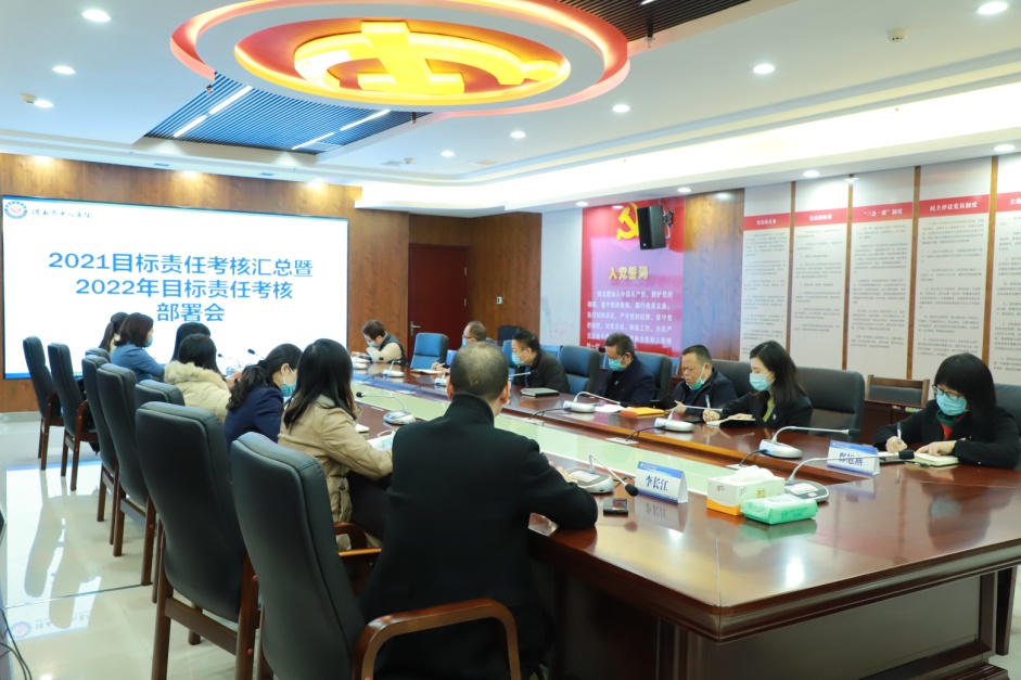 相关科室负责人就2021年度目标考核分值及细则进行讨论,并对“一票否决”及“加分事项”进行商议,共同构思2022年目标责任考核工作,对目标责任考核的责任科室及考核细则分值提出建议。