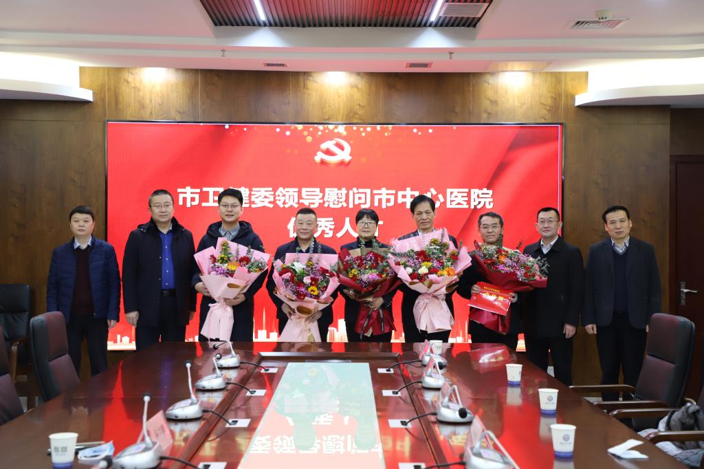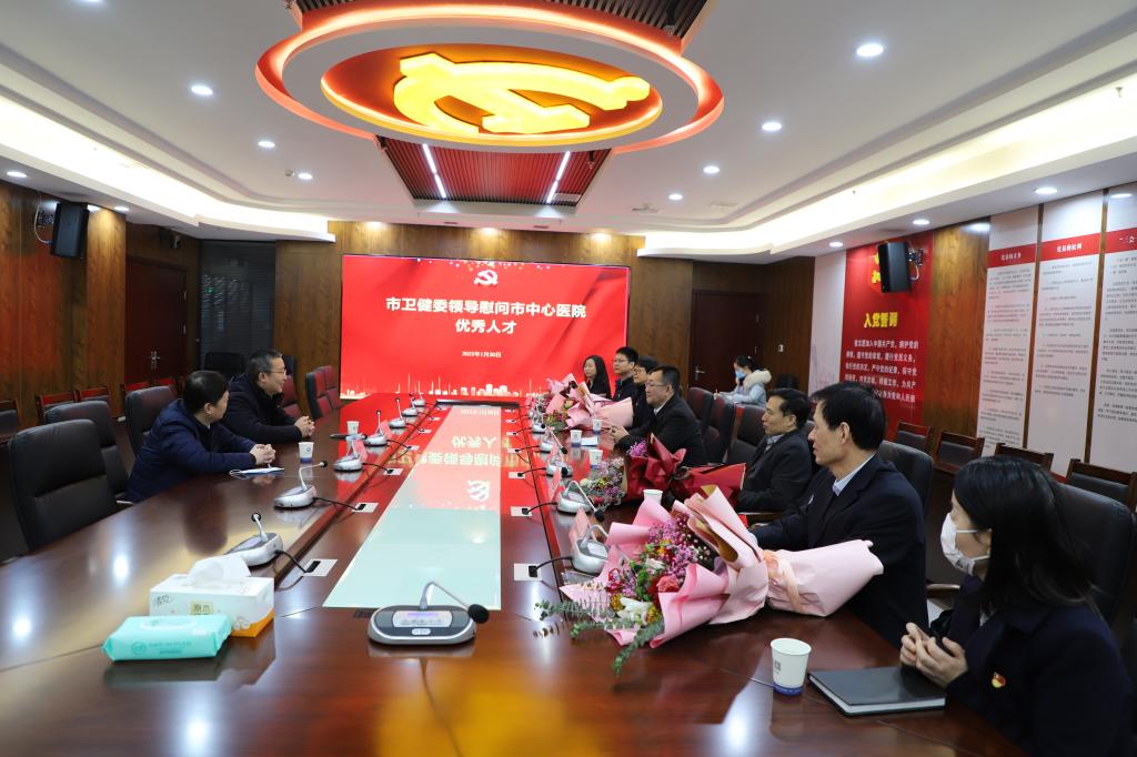 1月30日上午,新春佳节即将到来之际,市卫健委党组成员、驻委纪检组长杨立鹏对市中心医院优秀人才进行节前慰问,感谢他们为我市医疗事业发展作出的突出贡献,并致以诚挚的问候和节日的祝福。市中心医院党委副书记党继革、副院长乔梵、业务主管领导焦建雄及优秀人才代表参加慰问座谈。
