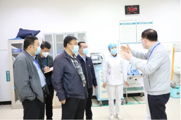 指导小组一行分别对医院发热门诊、急诊、住院病区等进行检查,查看是否规范设置发热门诊、所有发热患者是否采取全封闭就诊流程,急诊科隔离抢救室、住院病区过渡病房是否合理使用,住院患者及陪护人员有无核酸、是否实行封闭管理等。同时,指导小组对相关岗位在疫情突发状态下各类人员就医流程进行问询,是否设置必要的急诊抢救、手术和过渡病房,能否充分保障孕产妇、危重症患者以及血液透析、传染病、放化疗等特殊患者的就医需要。
