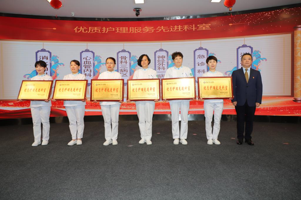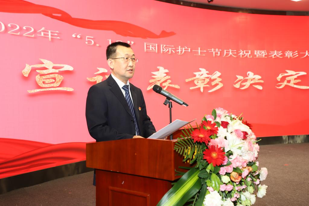 党委副书记党继革宣读表彰决定,大会对优质护理先进科室、优质护理服务标兵、优秀护理管理者、最美夜班护士以及护理主题演讲比赛中一、二、三等奖获得者进行了表彰。
