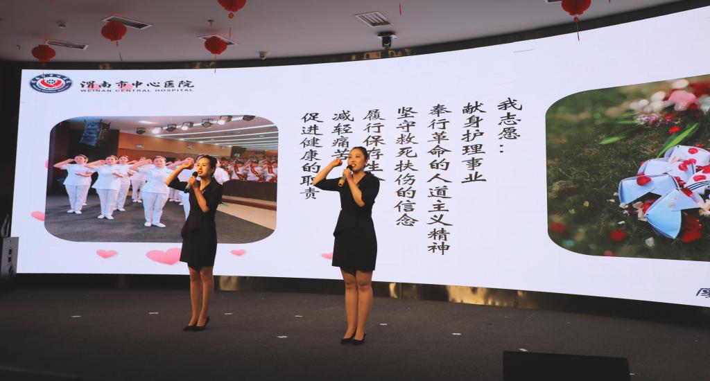 诗朗诵《白衣天使,生命之光》,涌动着生命的激情、洋溢着蓬勃的朝气,表达出渭医护理人不畏艰险、甘于奉献的铿锵誓言。