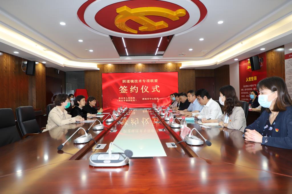 5月13日,西安市人民医院(西安市第四医院)与乐鱼手机站入口阴道镜技术专项联盟举行签约揭牌仪式。西安市人民医院基层服务科、急诊重症病院主任马思蕊,阴道镜诊疗中心主任戴瑜平,乐鱼手机站入口副院长胡洪波、党委委员王保全、医务科副科长刘韬、妇科主任雷红等参加仪式。