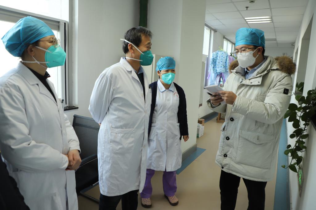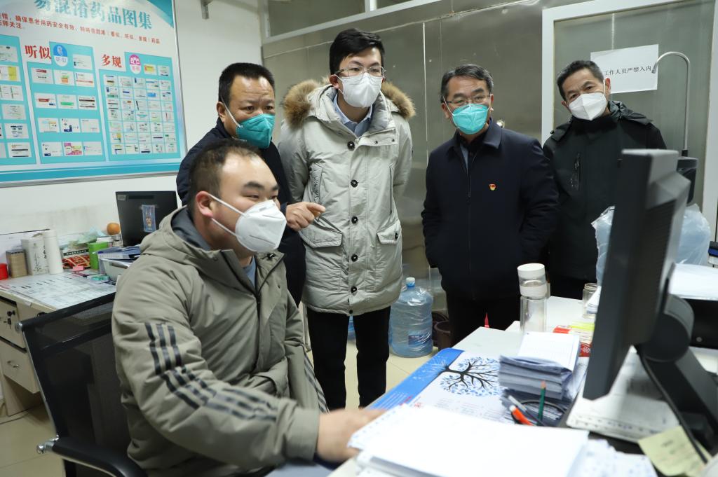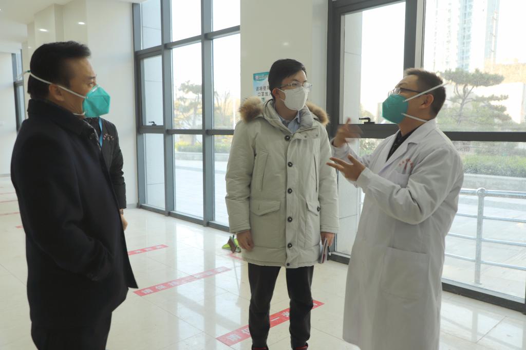 督导组先后深入急诊、药品库房、重症医学科、发热门诊等处实地查看,重点询问了医院职工新冠疫苗接种、医疗资源储备与利用、药品和检测试剂储备,以及发热患者接诊等情况。院长乔梵汇报了医院规划布局、设施条件、物资和设备配备和定点救治医院人员配备等相关情况。