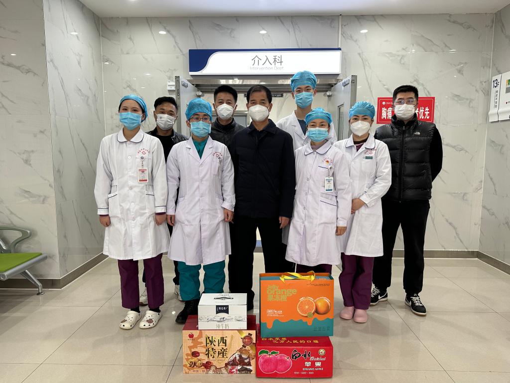“过年好,大家辛苦了,向你们致敬!”“祝大家新年快乐,万事如意!”每到一处,院领导们亲切温暖的祝福声不绝于耳。院领导们同医务人员握手,详细询问医疗及后勤值班情况,嘱咐大家春节期间要更加认真负责,加强巡视,确保医疗质量和医疗安全。