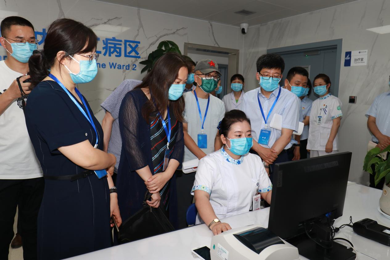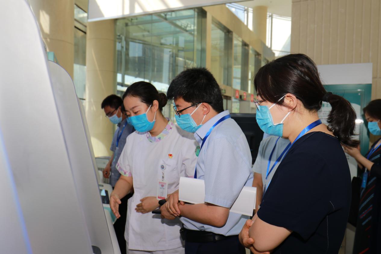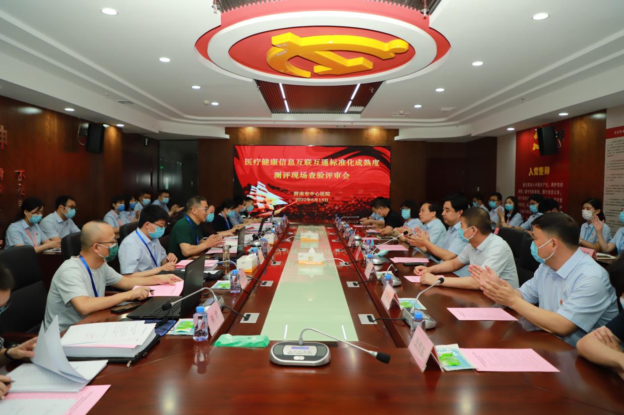 2022年5月13日,医院顺利通过专家文审环节,6月14日迎来定量测评环节。测试专家对医院17个数据集标准化情况、53类共享文档标准化情况、平台运行性能、平台交互服务等方面进行详细的实验室检测,医院信息系统数据标准化程度完全符合医院互联互通定量测评要求。6月15日,陕西省卫生健康信息中心主任程谦克带队一行六名专家对信息互联互通标准化成熟度进行现场定性查验。市卫健委副主任同学军及相关科室负责人,院长乔梵、工会主席郗旭燕、副院长胡洪波、主管信息化院领导李红兵、党委委员王保全以及党政、医务、护理、质控、信息相关部门负责人参加评审会议并一同检查。专家组分别在门诊大厅自助区域、门诊收费窗口、门诊诊室、医学影像科、检验科、住院病区、智慧管理中心、信息中心机房等部门进行现场定性指标查验。在检查中,专家组重点查看了闭环管理、住院结构化病历、危急值管理等环节,从数据资源标准化建设情况、互联互通应用效果、平台硬件基础建设情况进行全面评估与指导。专家们表示,医院对信息化建设高度重视,对患者人文关怀到位,平台构架整体满意,信息化建设亮点纷呈,对医院互联互通建设情况给予充分肯定和高度认可,同时对医院信息化建设提出优化建议。