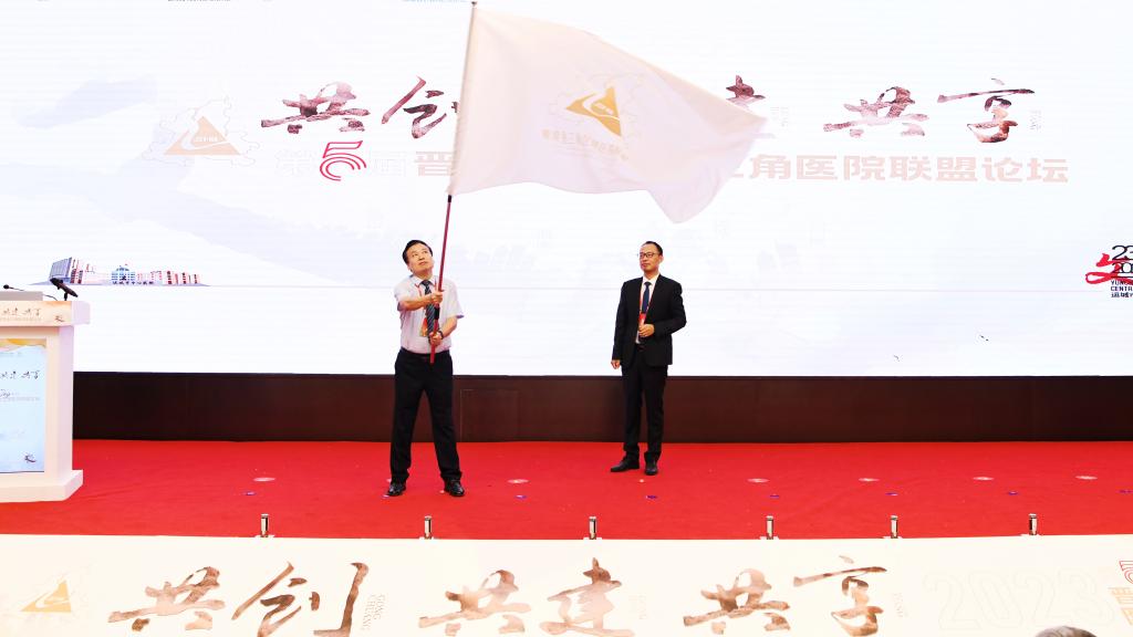 随后,在热烈的掌声中,乐鱼手机站入口作为下一届轮值承办单位,院长乔梵从运城市中心医院院长张钦手中接过联盟会旗,完成交接仪式。