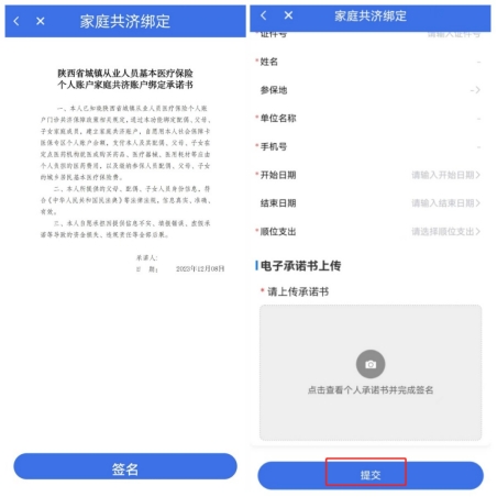 完成签名后,点击【提交】,即可完成个人账户家庭共济绑定。