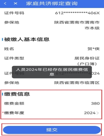 1、缴费人如已缴费,会提示“人员2024年已经存在缴费信息”。