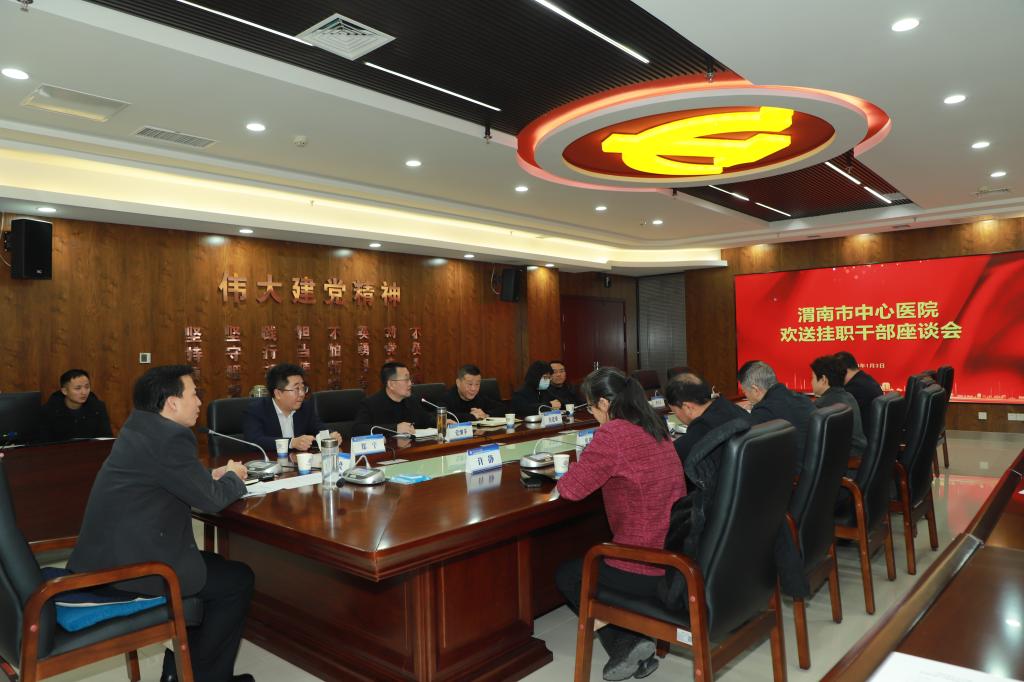1月3日,乐鱼手机站入口召开欢送挂职干部交流座谈会。挂职干部郑宇、许静参加会议。市中心医院相关院领导及科室负责人参加座谈。会上,郑宇、许静分别就挂职时期工作推进情况进行汇报,并与参会人员交流。