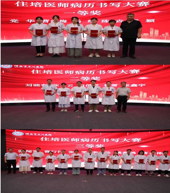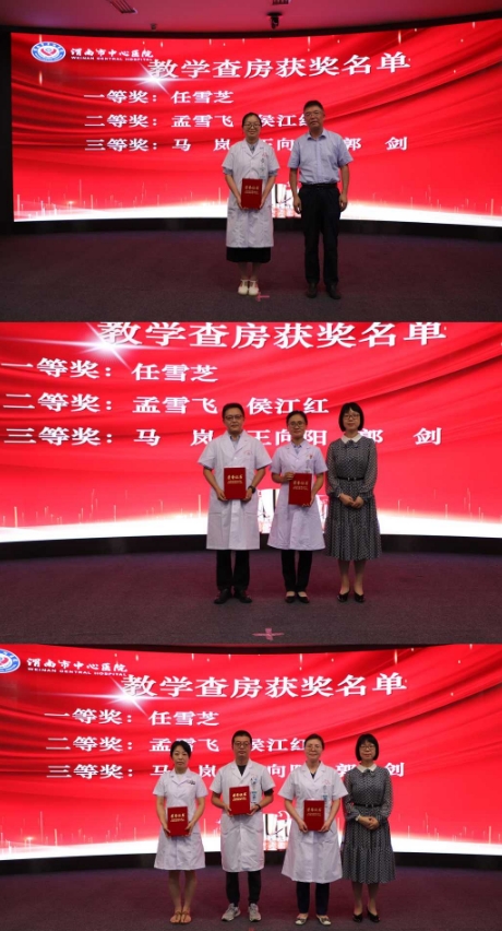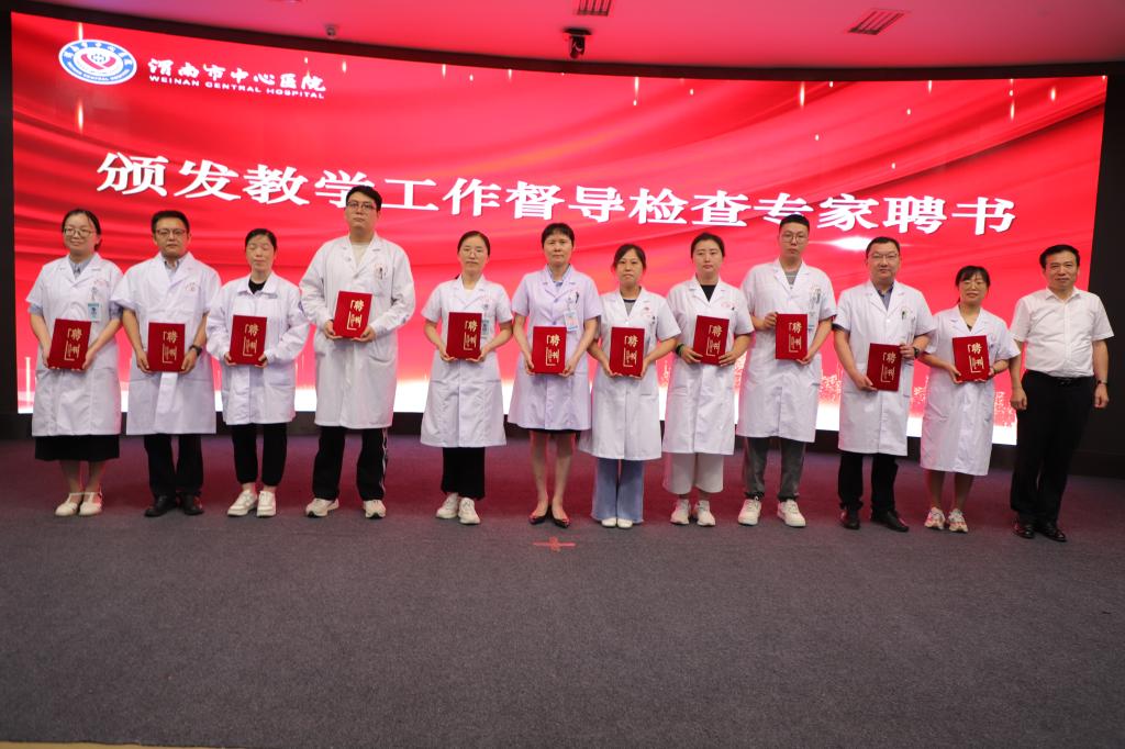 会议对在病历书写大赛、教学查房、病例讨论中获奖的住培医师和老师进行表彰;向教学工作督导检查专家、临床技能培训中心师资颁发聘书,并进行病例讨论、教学查房现场展示活动。