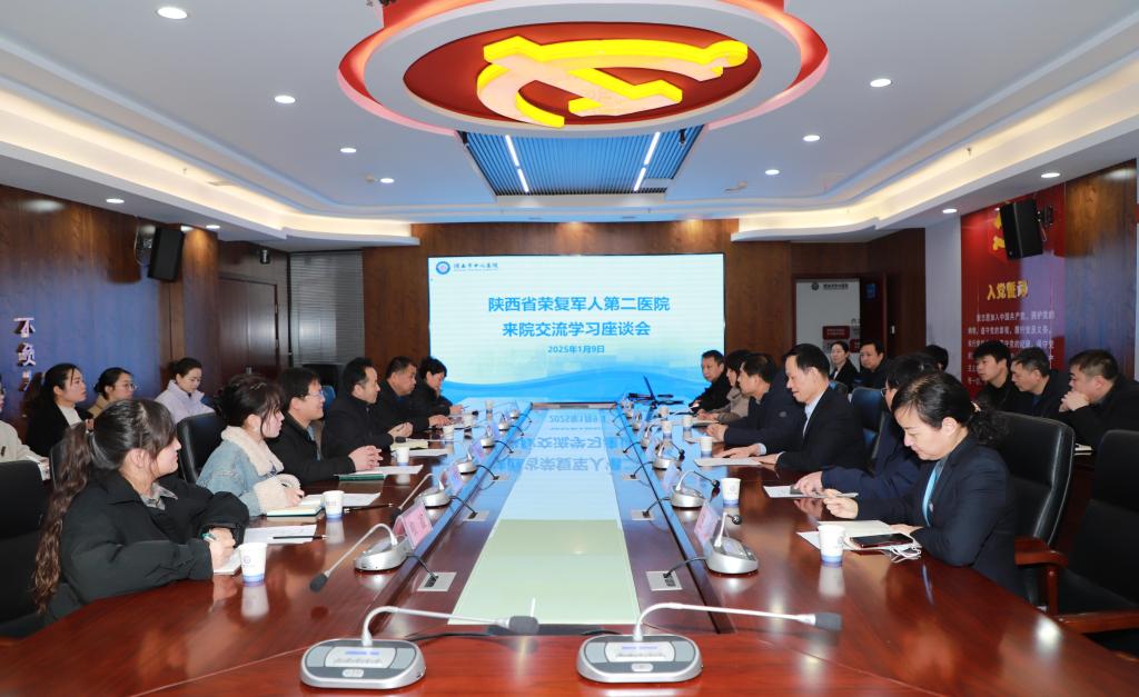 1月9日,陕西省荣复军人第二医院党委书记、院长张小房一行10人来市中心医院参观交流。市中心医院副院长胡洪波主持会议。