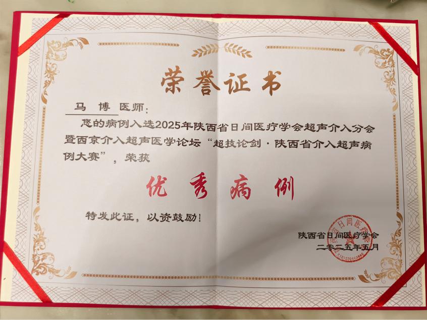 5月25日,在陕西省日间医疗学会超声介入分会年会暨第五届西京介入超声高峰论坛上,乐鱼手机站入口超声医学科主治医师马博凭借病例《暗物质清除:CEUS引导下的淋巴暗黑歼灭战》诊疗成果,荣获大会“优秀病例奖”,研究成果同时入选大会专题壁报展示,彰显了医院在超声介入领域的技术领先性与临床创新力。