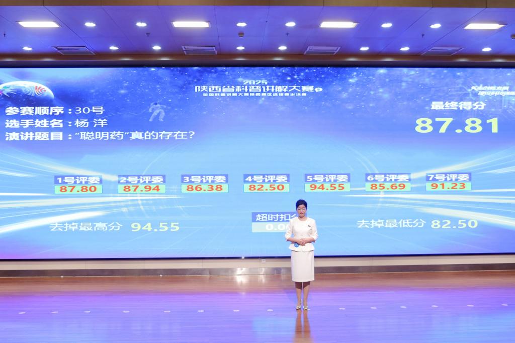 本次大赛设置公民科学素质常识考试、“我秀科普”和“我讲科学”三个环节。在比赛中,杨洋沉着应战,以《“聪明药”真的存在?》为题,运用生动比喻和专业讲解,向公众揭示了大脑工作机制及滥用所谓“聪明药”的危害,将专业的神经科学知识转化为通俗易懂的科普内容,最终以87.81分的优异成绩获得三等奖。