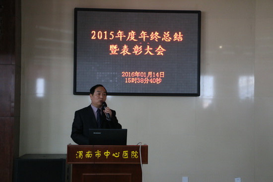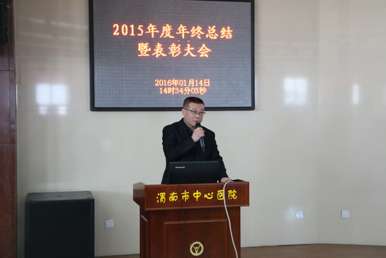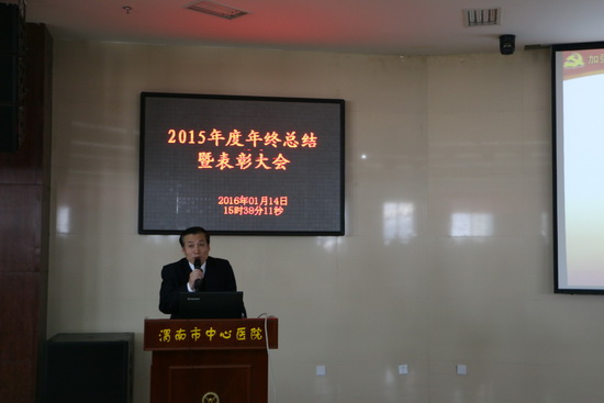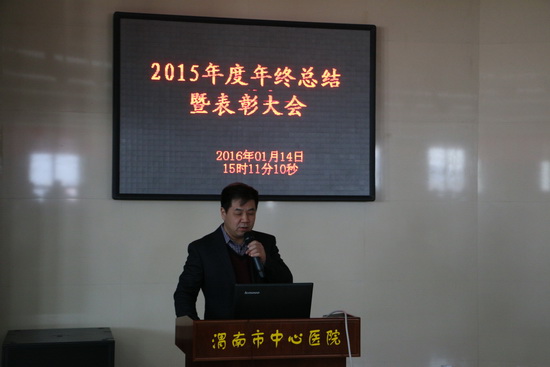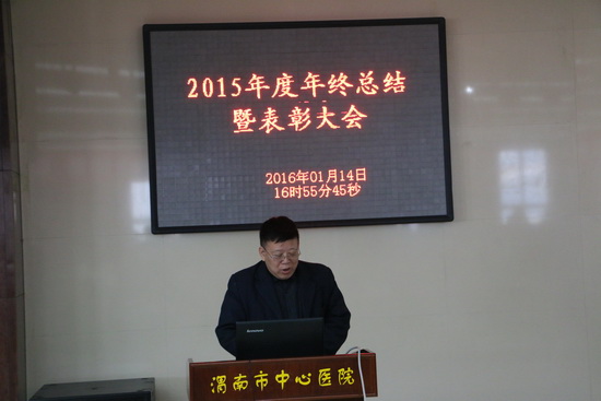 张进社院长像翻阅书本一样娓娓道来,把2015年医院的亮点、所经历的大事做了一个回顾,并就全院医疗、护理、复审、药事、控感、工会、行政后勤等各项工作进行了总结,使大家看到这一年我们取得的成绩,并指出了存在的问题。2016年,要求全院职工在新的一年里,齐心协力,努力推进等级复审工作;完成二期工程前期准备工作;加大高端人才引进与培养;打造优势专科;上下联动,开展分级诊疗;实行目标管理,落实绩效考核;加强党风廉政建设,推进医院的建设和发展。