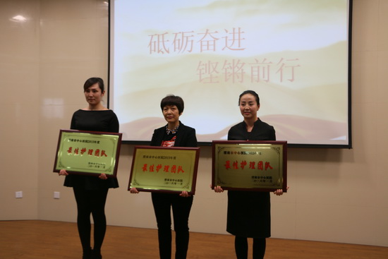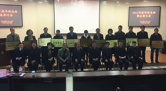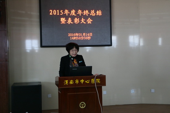 大会对2015年在各个岗位踏实肯干、默默付出的先进科室及优秀个人进行了表彰,颁发了奖牌和荣誉证书。心血管内科等3个护理单元荣获2015年度最佳护理团队;解明侠等3名护士长荣获2015年度优秀护士长;神经内科李娜等10人获得2015年度“十佳”责任护士;《经内镜逆行胰胆管造影术》等4项新技术获得2015年度新技术、新项目奖;神经内科刘燕的《中医药治疗帕金森病疗效机制的实验研究》、麻醉手术科苗良生的《一种新型吸氧面罩》获得2015年度科研成果奖;心内科李军农主任的《H型高血压患者个体化治疗在脑卒中中预防中的临床研究》获2015年度科研立项奖;心血管内科组织的《渭南市第三届心血管病论坛》荣获2015年度优秀学术会议奖;姜永红等2名医师荣获2015年度对口支援先进个人。大会并对神经内科等13个先进科室、行政党支部等4个党支部进行了表彰。