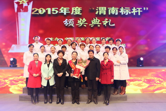 3月4日下午,我院护理部获得了由市委宣传部主办、市文化广电新闻出版局协办的“2015年渭南标杆”的集体奖,市卫计局领导、我院党委书记鲁海燕、副院长黄慧玲及部分护理人员参加了颁奖典礼表示祝贺。