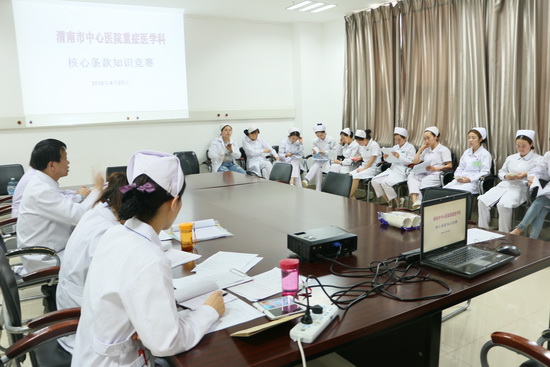 为更好地迎接“三甲”复审工作,4月25日,在门诊二楼会议室,重症医学科组织科室医护人员开展了核心条款知识竞赛。此次竞赛重症医学科40余名医护人员参加,李冬纯主任主持。为了达到竞赛的公平公正,本次活动邀请了复审办郗旭燕主任进行现场督察。