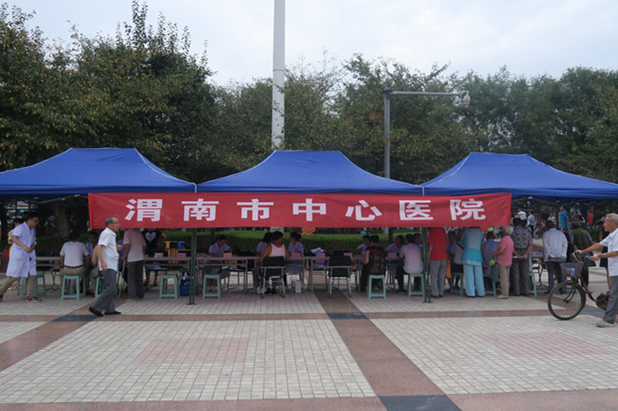 “感谢你,我衷心谢谢你,这旋转不息蔚蓝色的星球,感谢收获,感谢和平,感谢这一切一切......”为纪念红军长征胜利80周年,9月3日,在温婉动情的歌声中,渭南市2016年“服务百姓健康行动”大型义诊活动在中心广场拉开帷幕。此次活动以“传承长征精神,义诊服务百姓”为主题,渭南市卫生和计划生育局主办,我院十九个临床科室参加此次义诊活动。