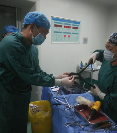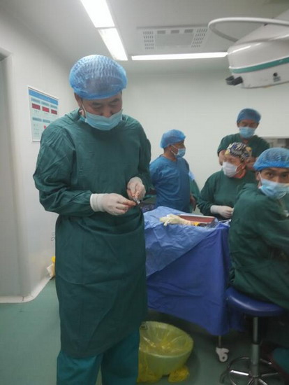 众所周知,骨科医生手术离不开器械和设备,在这里,每台骨科手术都需要他亲自找钢板、螺钉和克氏针等材料。材料不合适,他亲自修整;没有C臂,手术完全靠经验。有时实在想打退堂鼓,但是每每看到患者期盼的眼神和淳朴的话语,他是真心无法拒绝。两月来,他听到患者最多的一句话就是:胡主任,您就放心大胆去做,做好了,我们感谢您,做不好,这是神的旨意,我们不怪您。听到这样的话,谁会忍心拒绝,谁不尽心尽力。每次手术,他都尽量带着科室的医生去做,至今,已参加带教手术20余例,其中新技术新项目6例,分别是:三踝骨折并胫骨下端骨骺分离切开复位内固定术;胫骨开放性粉碎性骨折清创复位外固定架固定术;取骨术与植骨术;肱骨外科颈骨折切开复位内固定术;骨盆骨折切开复位内固定术;巴通骨折切开复位内固定术。股骨颈骨折人工股骨头置换术是阿里地区第二例手术,在当地也产生了很大的社会影响。他参加带教的常规手术有:锁骨骨折切开复位内固定术;肱骨髁上骨折切开复位内固定术;股骨干骨折切开复位内固定术;胫骨干骨折切开复位内固定术;内踝骨折切开复位内固定术;内、外踝骨折切开复位内固定术;多指畸形矫形术;清创缝合术;断指残端修整术;腱鞘囊肿切除术等。指导或参与手法复位石膏固定10余人次。通过带教,规范了骨科手术的操作技术,提高了手术操作水平和技巧。时至今日,没有一例因为技术原因而转走的骨科病人,基本做到中组部提出的中病不出地区的援藏目标。