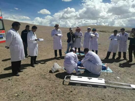 上班第二天,日土县就发生了百年不遇的冰崩看着他150/100mmHg的血压,领队让他留守,躺在床上心里充满内疚。一晚上似睡似醒,凌晨7点钟(这里比内地晚两个时区)的电话铃声把他惊醒,匆匆赶到医院,才知道是一起车祸,一共5个人,当时死了一个,来医院的途中又死了一个,剩下的三个生命垂危。尽管头昏脑涨,但他马上和其他医护人员投入到紧张的抢救工作中。这一忙就到晚上12点多,期间只吃了一块油饼。最后一台手术,他虚脱了,大汗淋漓,两眼发黑,两腿发软......麻醉科主任和外科次旦扎西医生把他扶到沙发上,赶快给他擦汗、吸氧、喝高渗糖。半个小时后把他送回宿舍。这一天,给他的心理留下了深深地阴影,他不知道自己能不能坚持下来,他的信心开始动摇。