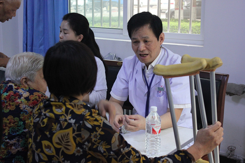 当天上午,医务人员分组前往华阴市人民医院、华阴市中医医院、华阴市妇幼保健院、陕西省荣誉军人康复医院等开展义诊、学术交流及学科指导。华阴市人民医院义诊现场,前来就诊和咨询的患者络绎不绝,心内科李军农主任、妇科尚铁燕主任、骨一科翁润民主任等一边给患者查体,一边耐心回答群众提出的问题,仔细为患者诊治。苏和平主任医师、李红阁副主任医师和关玉莲护士长受邀来到华阴市中医院,认真为患者施治和讲解,并为医务人员带去了精彩的学术讲座。与此同时,焦建雄组长与各位专家也分赴相关科室,与对口科室进行交流,对危重疑难病例进行查房、讨论,并指导医院及科室的复审工作。通过同心助推活动,面对面诊治患者,方便了广大群众;面对面与医务人员交流,进一步提高了诊治水平,大家对此活动表示非常感谢。