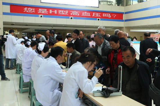 仅仅2个小时,就有700余名群众参与义诊,测量血压千余次。义诊现场,心内科李军农主任、韩红梅副主任,重症医学科李冬纯主任,急诊科范华杰副主任和心内科侯江红副主任医师等认真为大家查体,耐心回答大家提出的问题。李军农主任告诉大家,渭南市高血压的知晓率仅仅只有30%,治疗率更低。H型高血压的患者在高血压患者中比例高达75%,是我国脑卒中高发的重要原因。乐鱼手机站入口自启动国家“十二五”重大专项——H型高血压比较效果研究项目以来,做了大量工作,取得了显著的成绩。今后,还将引进互联网技术,将现有的科研带动脑卒中的预防深化深入,建立区域脑卒中防治大数据,把渭南市卒中预防为主的慢病防治做大做强,做出我们渭南特色。现场,医务人员多次给群众强调高血压的危害,提醒大家一定要养成良好的生活习惯,适度运动,控制体重,对高血压要提早防范。在整个上午的义诊过程中,前来咨询和就诊的市民络绎不绝,现场热情有秩序。