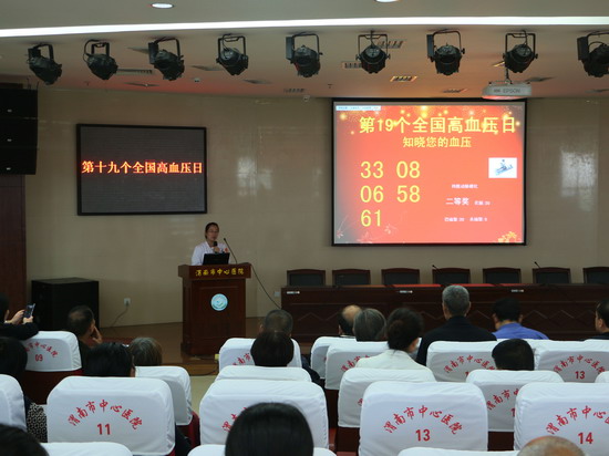 上午10时,高血压健康知识讲座在我院学术报告厅展开。我院心内科4位专家从中国高血压现状、健康管理您的血压、如何正确选择降压药、您是H型高血压吗等大家关注度比较高的话题进行讲座。在讲座中,专家不时与前来参加讲座的市民们进行互动。除了普及和宣传高血压的防治知识外,现场还随机抽取了30名幸运群众,为其送上免费监测动态血压、监测动脉硬化的健康礼物。
