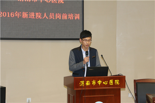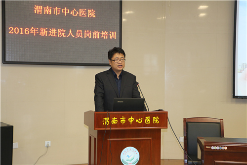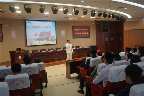 张进社院长介绍了我院的发展历史,并强调,人才是强院之本,在我院长期发展的过程中,是不拘一格从各种渠道选拔优秀人才的,希望学员们充分认识到岗前培训的必要性,通过在我院的学习和工作成为我院在各项业务中的骨干人才。尤其是在规培学员的培养上,我院倾注了大量的心血,创造了优越的条件,希望各位学员在我院的学习中学有所得、学有所成。在为自己树立明确人生目标的基础上,注重细节,注重医德培养,树立良好的医者形象,恪守职业道德,通过不断学习提升自我,成为优秀的医务工作者,通过这次岗前培训一定能够帮助大家实现理想。