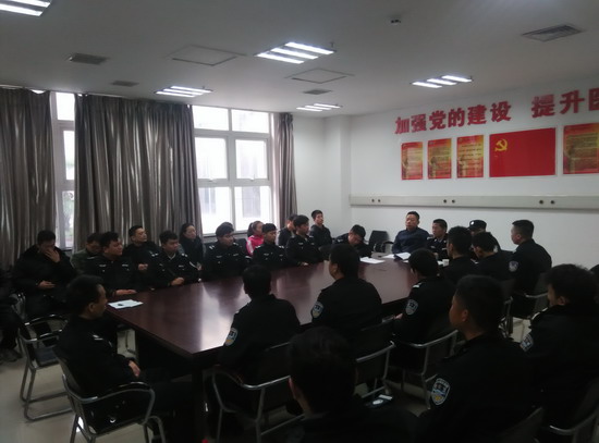 为加快创建“平安医院”步伐,加强巡逻队成员安全防范意识,更好地做好我院安全保卫工作,11月4日,巡逻队全体人员在门诊二楼会议室召开冬季安全防范专题会议。特邀杜桥派出所警长刘长太参加会议。