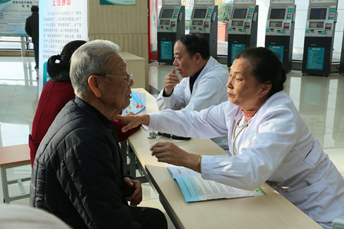 “护士,帮我测一下血糖和血压吧。”在白杨护士长的搀扶下,一位老人坐下说道。