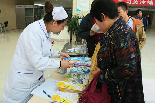 11月14日是第十个“联合国糖尿病日”,今年的主题是“着眼糖尿病”。为了进一步提高公众对糖尿病高危因素的认识,推进糖尿病的早期筛查、早期诊断,做好糖尿病的健康教育推广工作,我院组织肾病内分泌科和眼科专家在医院门诊大厅举办了糖尿病日义诊活动。