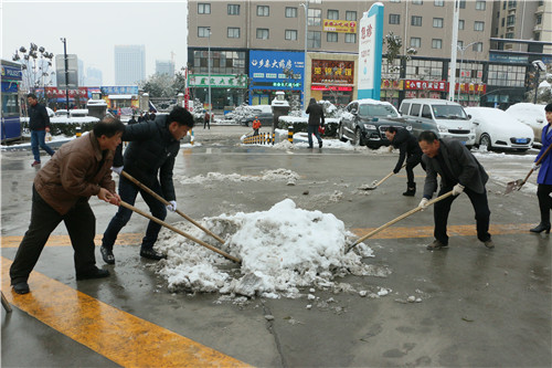 昨日,我市迎来了2016年的第一场大雪,由于积雪经过汽车、行人的多次碾压、踩踏,车辙与脚印重叠在一起,给市民出行,尤其是患者就医造成安全隐患。23日早上8时,我院院长张进社,党委书记鲁海燕及其他院领导班子成员带领行政后勤、保洁人员等部门的干部职工50余人,在凛冽的寒风中对医院的主要道路进行了铲雪除冰。