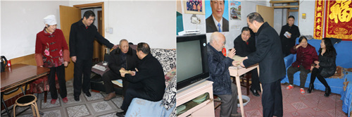 在离退休干部职工家中,张院长拉着老职工的手,与他们促膝谈心,嘘寒问暖,询问他们的生活情况和身体状况,并亲手送上慰问金以表示对老职工们的关心和关怀。