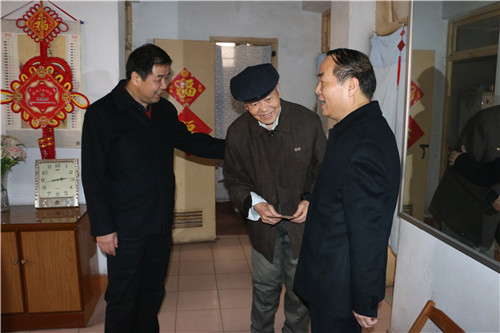 猴送蟠桃辞旧岁,金鸡报喜迎新春。元月18日下午,在新春佳节来临之际,张进社院长、鲁海燕书记、副院长黄慧玲、工会主席施泰来及相关部门负责人走进老医院的家属区,为离退休老干部及困难职工送去诚挚的新年祝福。