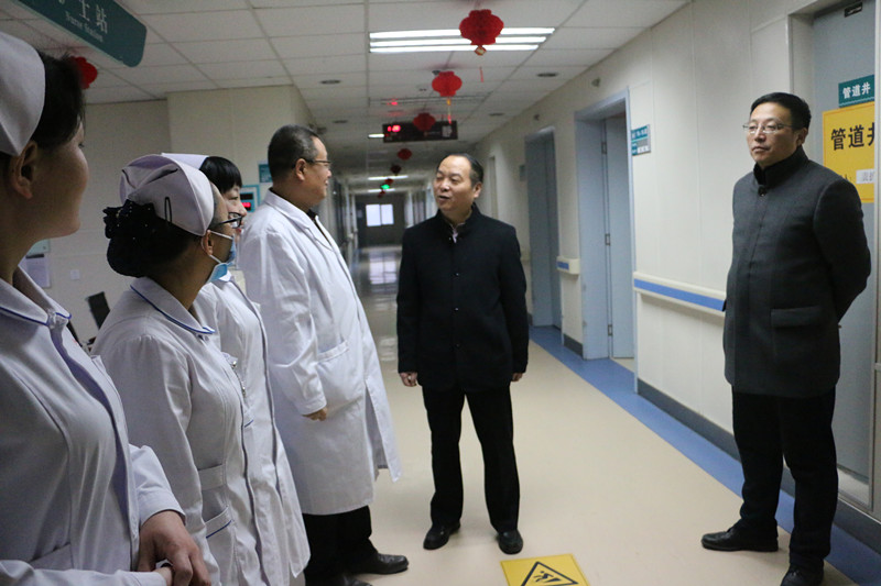 上午8时,院长张进社、副院长姚建龙、副院长乔梵、医疗组长焦建雄等带领的慰问组分别来到各个科室,当看到大部分科主任、护士长均亲临一线安排部署工作,所有值班人员坚守在工作岗位,院领导向他们送上节日祝福的同时,也为他们的敬业精神所感动。