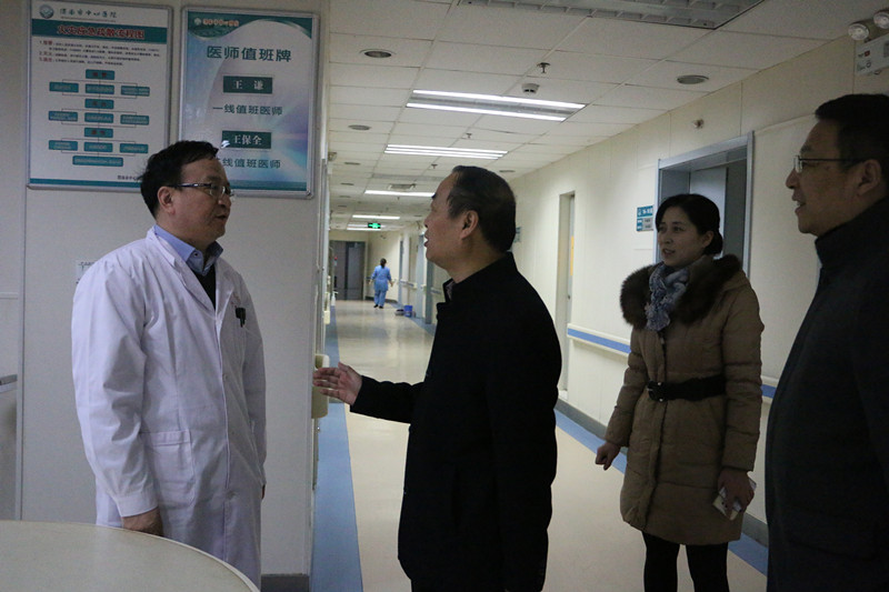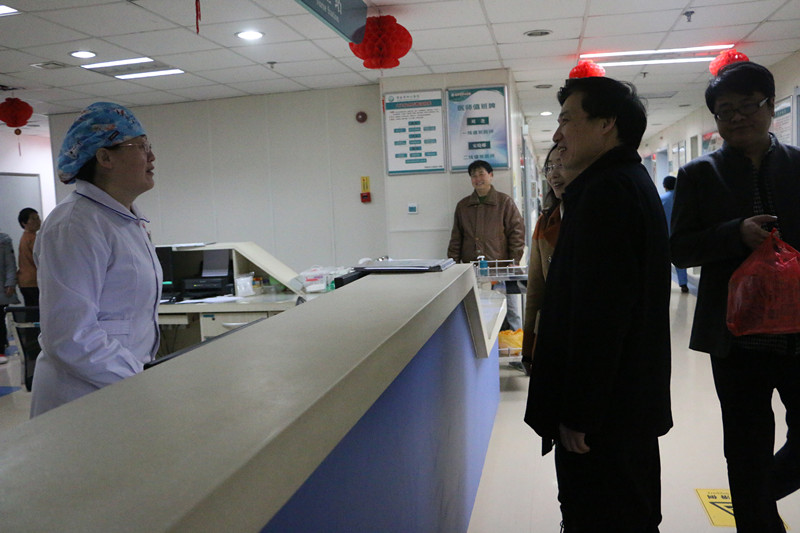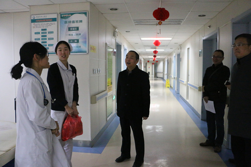 来到老院区慰问的焦组长一行,询问了感染病科病房住院病人的基本情况和春节期间医护人员值班安排情况、节假日紧急人员替代方案,在充分肯定工作的同时,要求大家一定要注意安全。